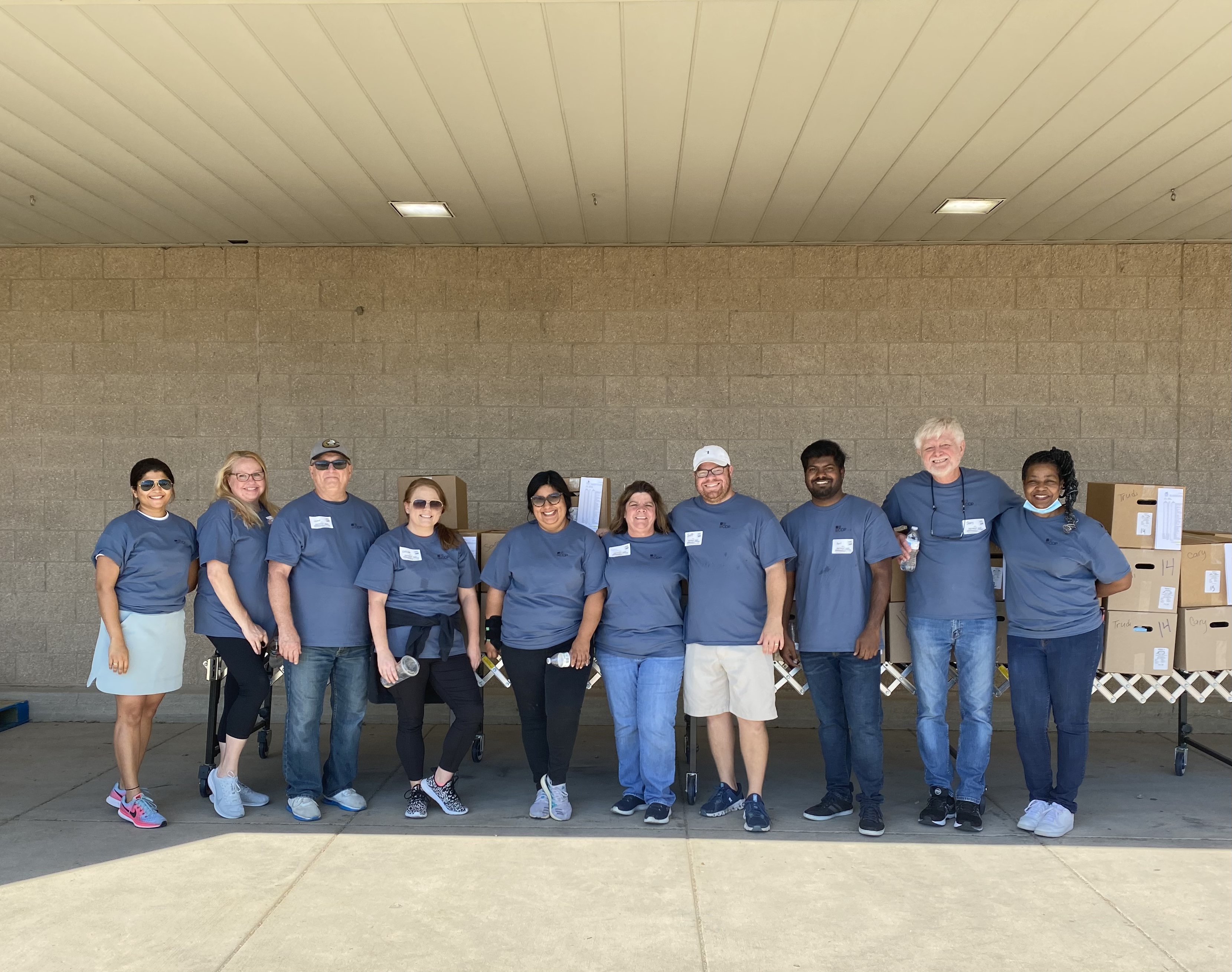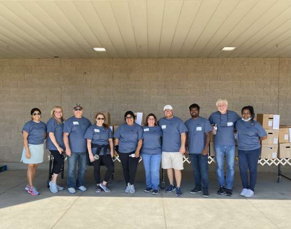 A group from the Romeoville, Illinois office got together to help at their local food bank.